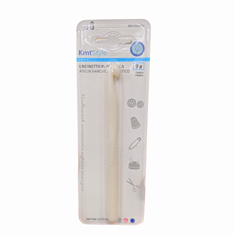 Croșeta nr. 9, cu diametrul de 9 mm și lungimea de 14 cm, este realizată din plastic ușor, plăcut la atingere, îngrijire a utilizării comodă chiar și în timpul sesiunilor mai lungi de lucru. Dimensiunea generoasă o face potrivită pentru fire groase, precum lână voluminoasă sau șnururi textile, fiind ideală pentru pături, fulare, accesorii sau decorațiuni handmade. Suprafața netedă permite alunecarea ușoară a firului, contribuind la un ritm de lucru constant și rezultate uniforme. Este o alegere practică atât pentru începători, cât și pentru pasionații de croșetat care doresc un instrument simplu și eficient.