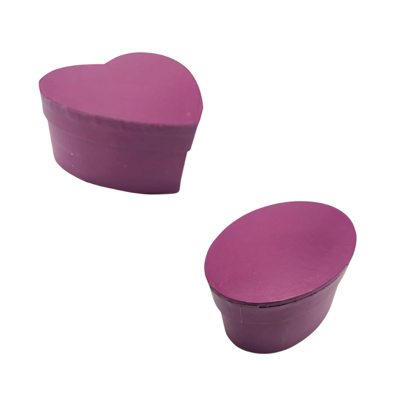 Cutie cadou în formă de inimă sau ovală, realizată din carton mov, are un design simplu, potrivit pentru ambalarea cadourilor mici. Este practică și ușor de folosit.