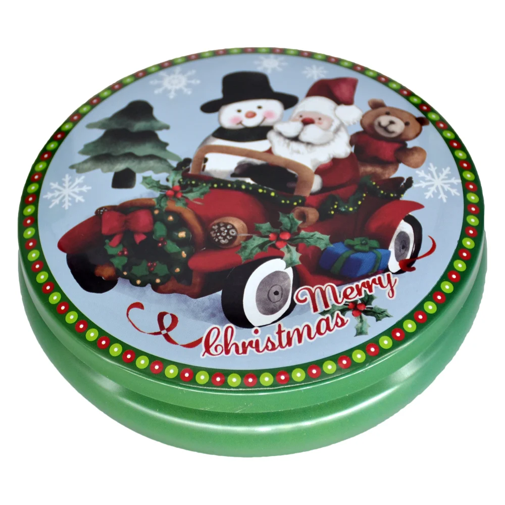 Cu diametrul de 13 cm, este ideală pentru ambalarea bomboanelor, biscuiților, bijuteriilor sau altor mici cadouri. Capacul decorat cu ilustrații de sezon oferă un aspect vesel și elegant, potrivit pentru orice decor de iarnă.