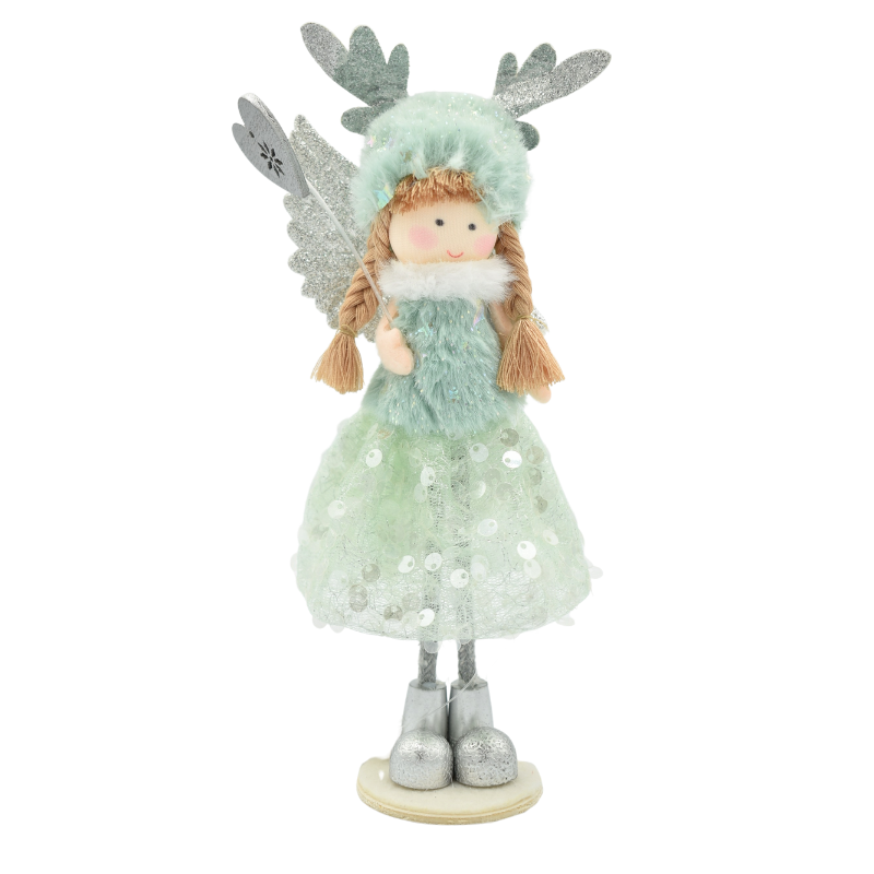 Îmbogățește-ți decorul de sărbători cu un îngeraș adorabil de 20 cm, realizat cu atenție la fiecare detaliu. Îmbrăcat într-o rochiță elegantă din material fin cu paiete, îngerașul are aripi sclipitoare și un zâmbet blând care emană căldură și bucurie.