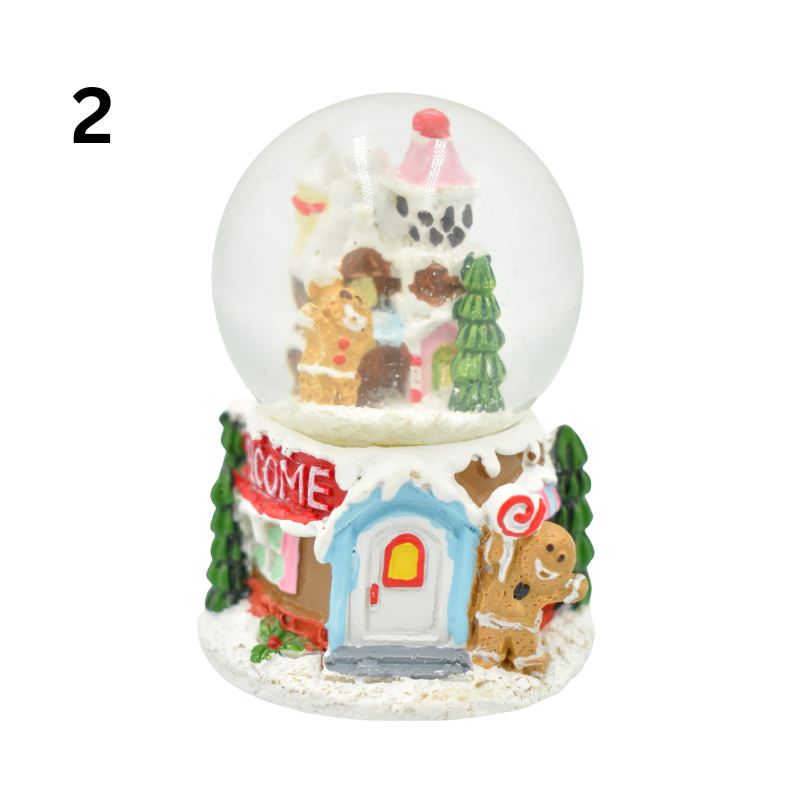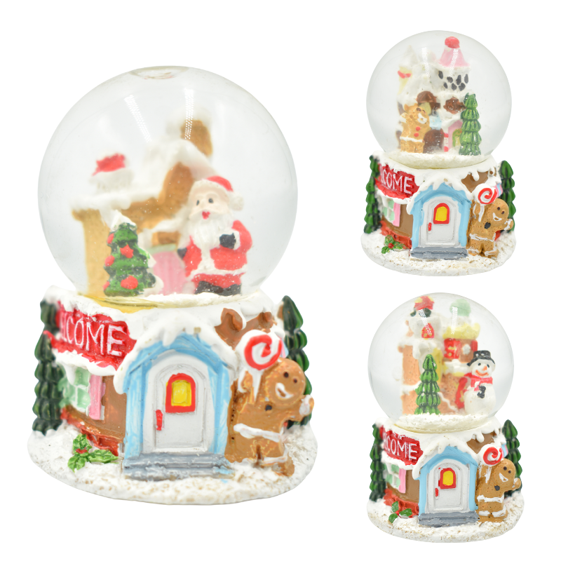 Globul este din sticlă clară, care permite o vizualizare frumoasă a scenei de iarnă din interior. Lichidul din interior pune în mișcare particule decorative, oferind un efect plăcut atunci când globul este agitat. Baza globului este decorată cu o căsuță și elemente de iarnă, iar figurina din rășină redă personaje specifice sezonului festiv, precum Moș Crăciun sau om de zăpadă. Este un ornament potrivit pentru decorul casei în perioada Crăciunului și un cadou inspirat pentru cei care care iubesc atmosfera sărbătorilor.