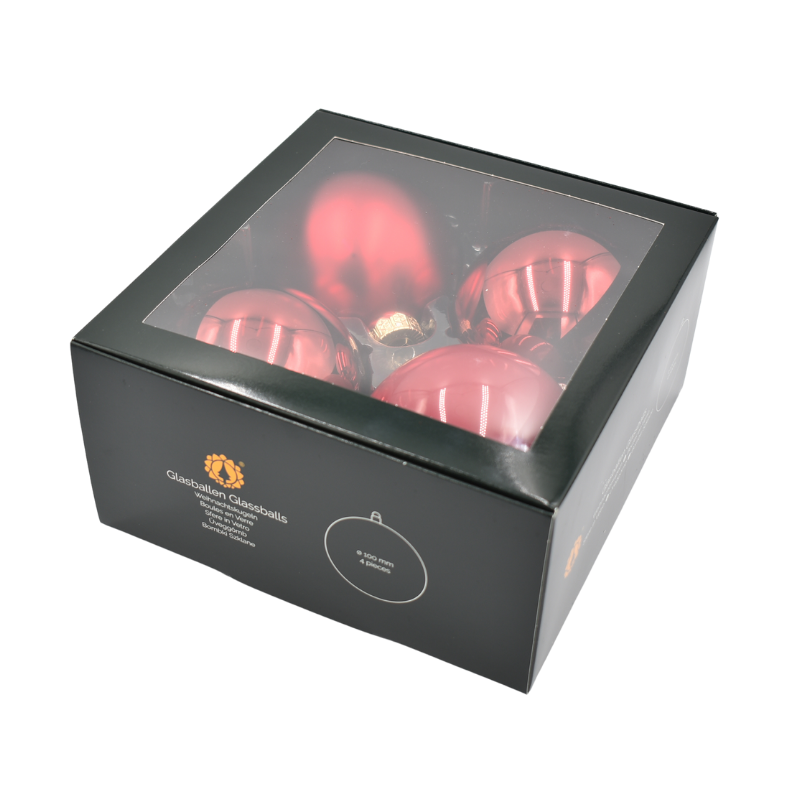 Alege un decor de Crăciun tradițional și elegant cu acest set de 4 globuri din sticlă de 10 cm, într-o nuanță superbă de roșu intens. Aceste globuri mari sunt ideale pentru a completa bradul cu accente clasice și strălucitoare, aducând o atmosferă caldă și festivă în casa ta.