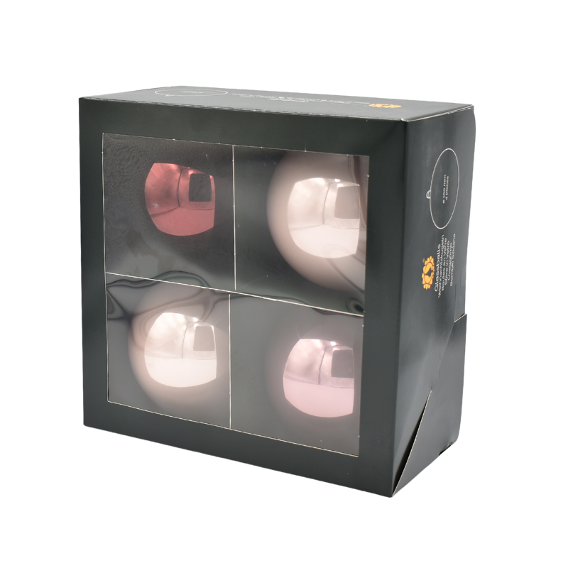 Acest set de 4 globuri de Crăciun din sticlă, în nuanțe de roz este alegerea ideală dacă îți dorești un decor elegant și plin de rafinament în acest sezon festiv. Diametrul generos de 10 cm oferă bradului tău un aspect armonios, iar combinația subtilă de culori creează un joc delicat de reflexii care atrage instant privirile.