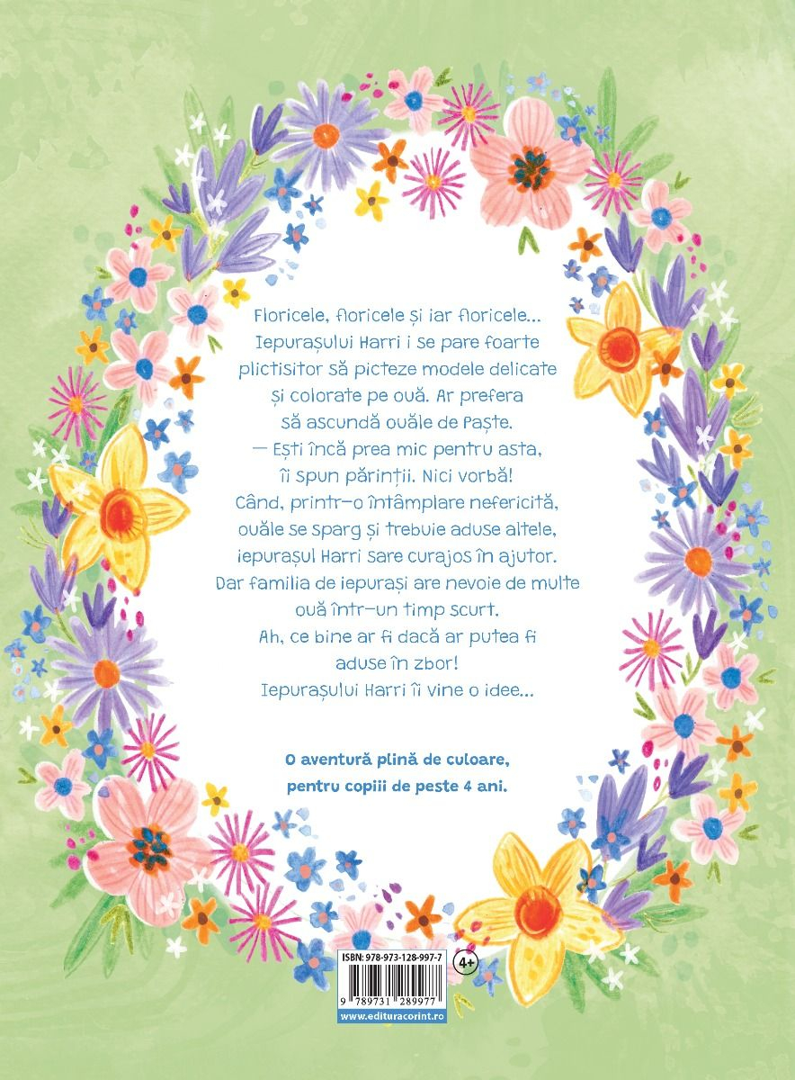 Harri vede in acest moment critic sansa lui de a straluci. Constient ca timpul este scurt si distanta este mare, micul iepuras propune o solutie neconventionala: ce-ar fi daca ouale ar putea fi aduse in zbor? Cu multa creativitate si un strop de indrazneala, Harri porneste intr-o aventura sugubeata care demonstreaza ca marimea nu conteaza atunci cand ai o inima curajoasa si idei geniale. Povestea este o lectie despre increderea in sine si despre cum dorinta de a ajuta poate invinge orice obstacol.