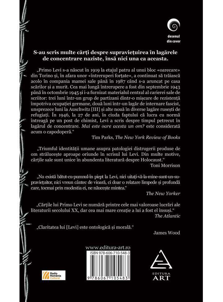 O mărturie esențială despre Holocaust, scrisă cu luciditate, sobrietate și o forță morală impresionantă. Primo Levi povestește experiența lagărului de la Auschwitz fără patetism, dar cu o claritate care zguduie conștiința cititorului. Cartea ridică una dintre cele mai tulburătoare întrebări ale secolului XX: ce mai rămâne din om atunci când umanitatea este sistematic distrusă.