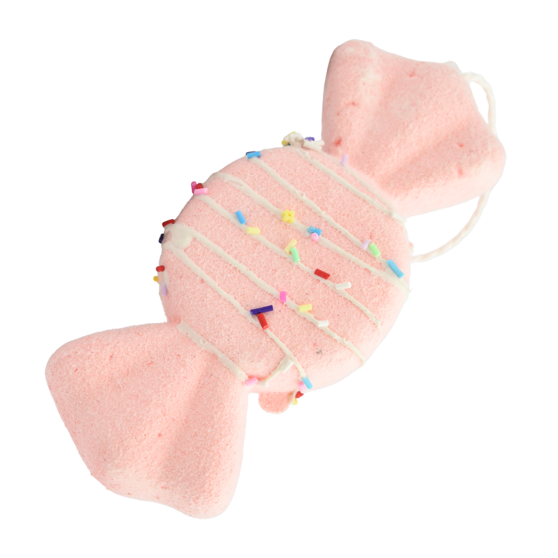 Realizat din polistiren ușor, are o textură catifelată și o nuanță delicată de roz, îmbogățită cu detalii colorate ce amintesc de bombonele decorative.
