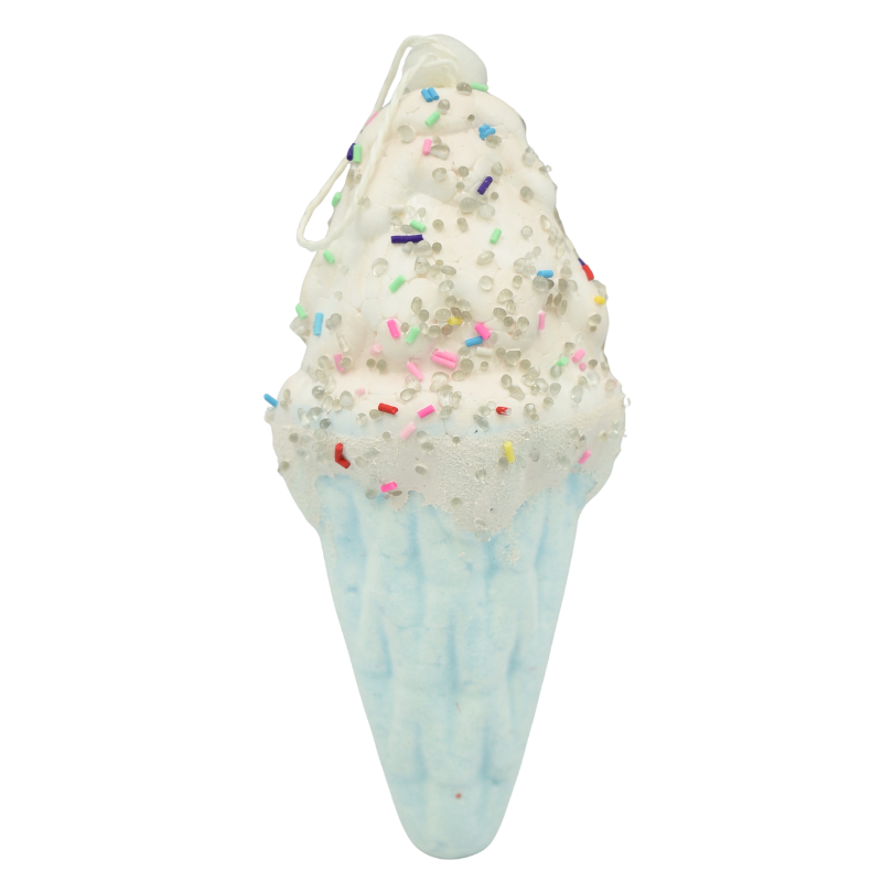 Îmbracă bradul în magie și culoare cu acest ornament în formă de cornet cu înghețată, perfect pentru a crea un decor inspirat din lumea deserturilor de iarnă.