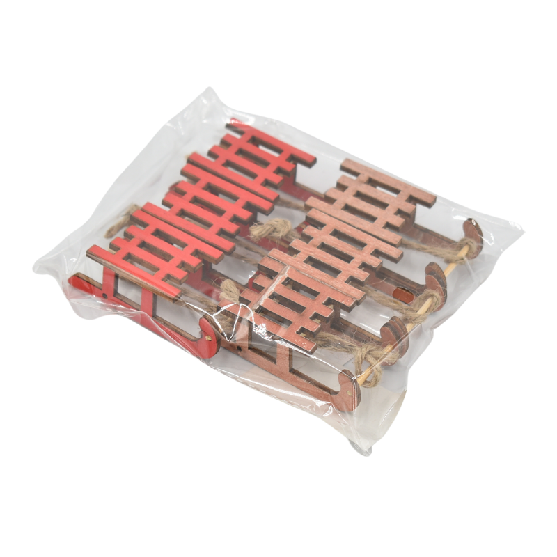 Setul conține 6 ornamente decorative în formă de săniuță, confecționate din lemn natural și finisate cu atenție la detalii. Fiecare săniuță are o sfoară rezistentă pentru agățare, fiind perfectă pentru bradul de Crăciun, ghirlande, aranjamente de masă sau pachete cadou.