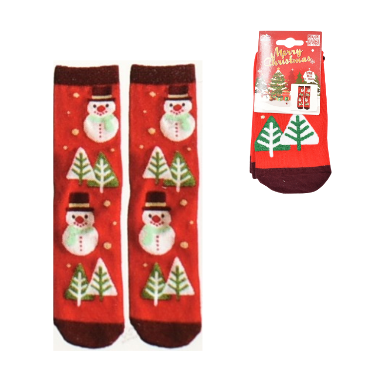 Șosetele de Crăciun din bumbac sunt alegerea ideală pentru a aduce confort și bucurie în sezonul sărbătorilor. Moi, elastice și pline de culoare, oferă o senzație plăcută la purtare. Modelul festiv cu oameni de zăpadă și brazi adaugă o notă veselă oricărei ținute de iarnă.