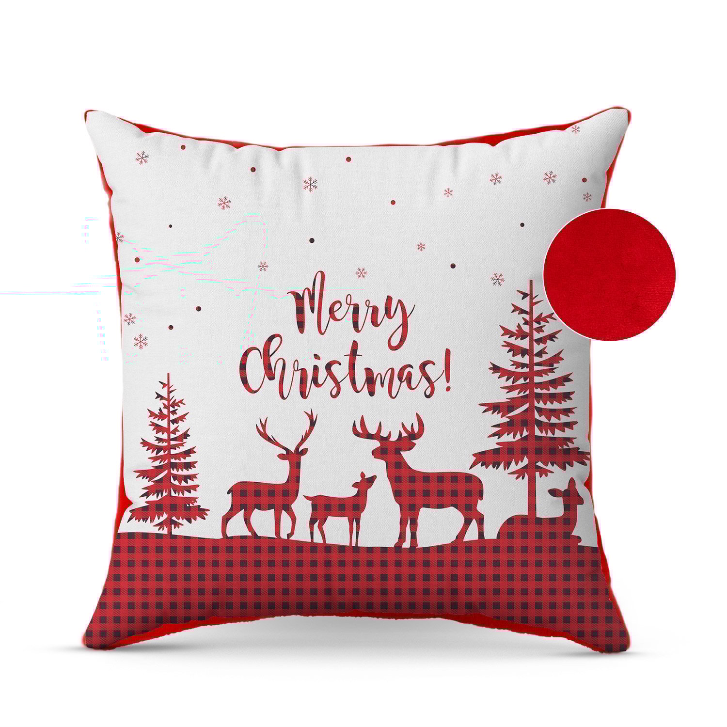 Pernă decorativă de Crăciun în nuanțe de roșu și alb, cu un design vesel care surprinde atmosfera magică a iernii. Imprimeul cu reni și brazi și mesajul „Merry Christmas!” adaugă un farmec aparte oricărui decor de sărbătoare. Este moale, confortabilă și ideală pentru a completa colțul tău festiv preferat.
