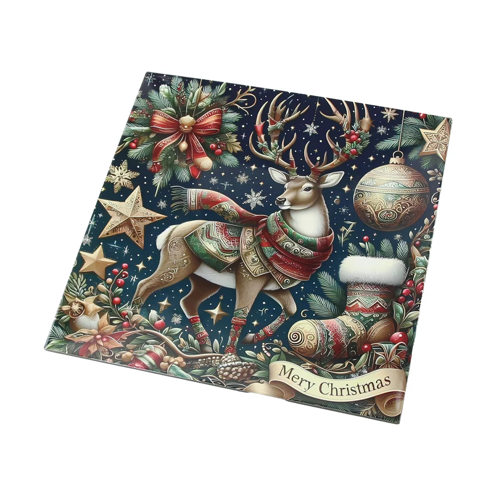 Acest platou cu tematică de iarnă aduce un plus de farmec mesei tale datorită designului detaliat cu reni și ornamente festive. Este potrivit pentru servirea prăjiturilor, gustărilor sau ca element decorativ în perioada sărbătorilor. Culorile intense și ilustrația elegantă îl fac ideal pentru a completa atmosfera de Crăciun.