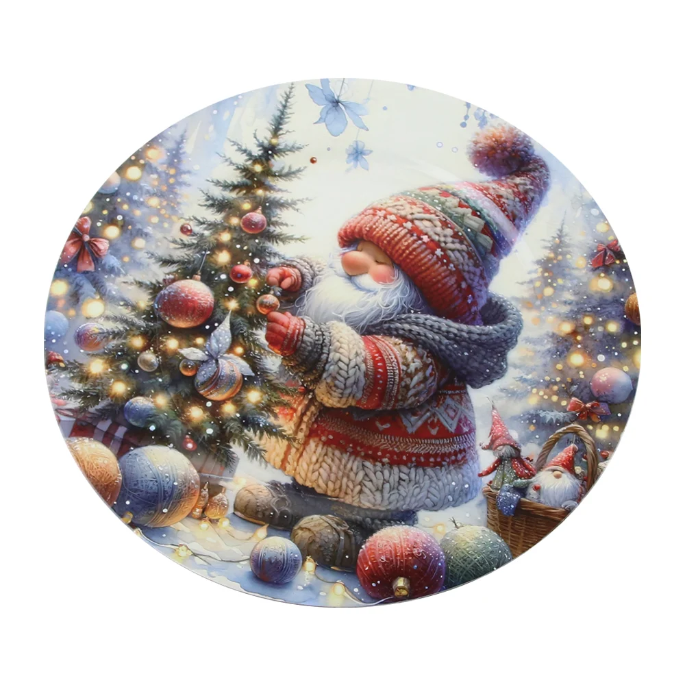 Acest platou este decorat cu un spiriduș vesel care împodobește bradul, într-o scenă luminoasă și plină de culoare. Este potrivit pentru servirea prăjiturilor, gustărilor sau pentru a adăuga un accent festiv mesei tale. Ilustrația detaliată creează o atmosferă caldă și plină de spiritul Crăciunului.