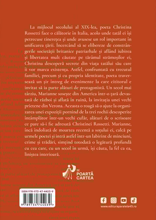 La un secol distanță, Marianne ajunge din America într-o Italie devastată de război, la invitația unui vechi prieten din Verona. Încă marcată de moartea recentă a soțului ei, Marianne acceptă să ajute la organizarea unei expoziții pornind de la trei rochii descoperite într-un vechi cufăr, alături de o scrisoare care pare să-i fi fost adresată Christinei Rossetti. Pe măsură ce pătrunde în povestea rochiilor, Marianne calcă pe urmele poetei și se afundă într-un labirint de minciuni, crime și trădări.