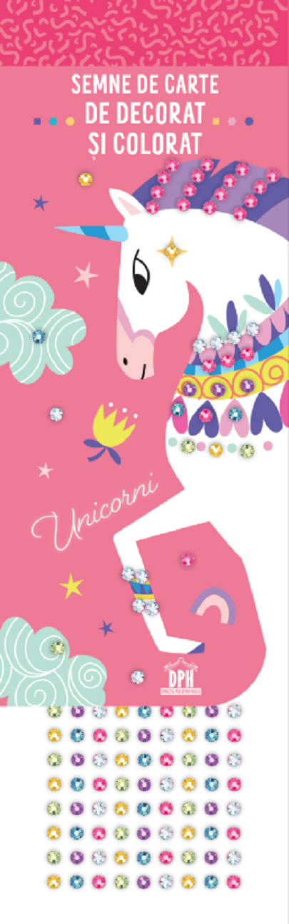 Pentru a face experienta si mai speciala, setul contine 5 semne de carte deja ilustrate in culori vibrante, ce pot fi folosite ca sursa de inspiratie sau ca accesorii gata de utilizat. Punctul de atractie principal este reprezentat de cele peste 250 de strasuri autoadezive incluse, care permit adaugarea unor detalii sclipitoare coamelor sau cornului magic al unicornilor. Aceasta etapa de decorare nu doar ca aduce un plus de spectaculozitate, dar joaca un rol esential in dezvoltarea concentrarii, a rabdarii si a motricitatii fine.