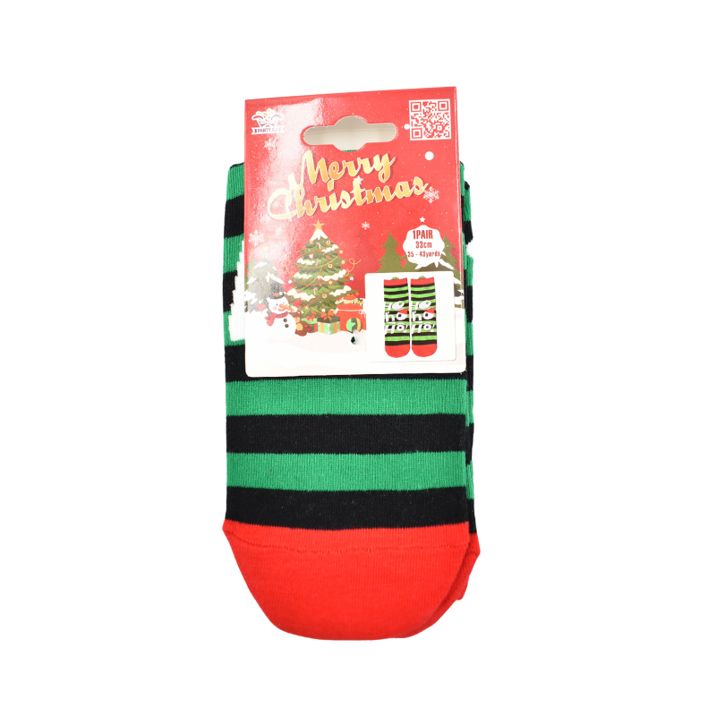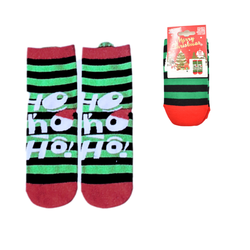Vesele, colorate și pline de spirit festiv, șosetele de Crăciun cu mesajul „Ho Ho Ho!” sunt alegerea perfectă pentru a-ți încălzi zilele de iarnă. Moi și confortabile, oferă un plus de bucurie oricărei ținute de sezon. Dungile verzi și negre completează perfect tematica de sărbătoare.