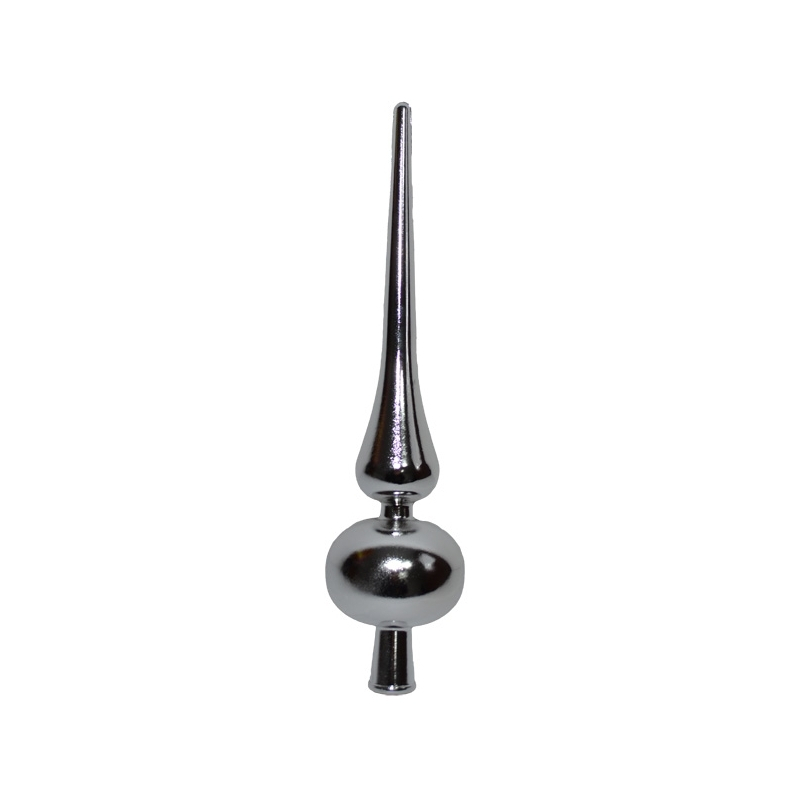 Vârful pentru pomul de Crăciun este detaliul final care oferă bradului tău un aspect complet și festiv. Confectionat din plastic de calitate, are o formă elegantă de glob alungit, terminat cu un vârf subțire, perfect pentru a fi fixat ușor. Culoarea argintie metalizată reflectă lumina frumos și se potrivește de minune cu decorațiunile în nuanțe reci, adăugând un aer rafinat și modern.