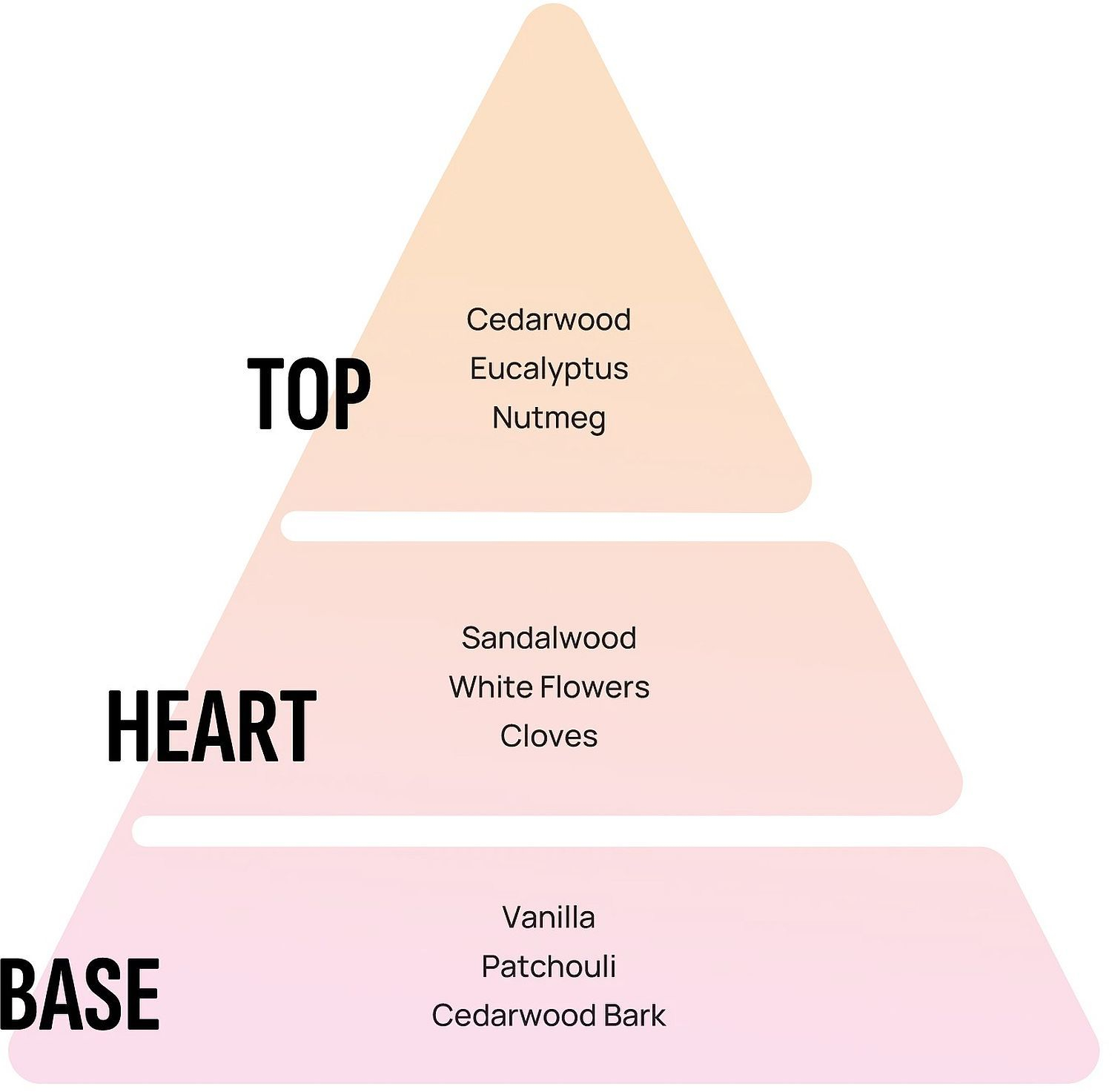 Notele de vârf îți întâmpină simțurile cu accente lemnoase de cedru, completate de prospețimea eucaliptului și o atingere caldă de nucșoară. Inima parfumului dezvăluie tonuri fine de lemn de santal, flori albe și cuișoare, aducând profunzime și eleganță compoziției. La bază, vanilia, patchouli și scoarța de cedru oferă o aromă caldă, ușor dulce și persistentă, care creează o atmosferă relaxantă și primitoare.