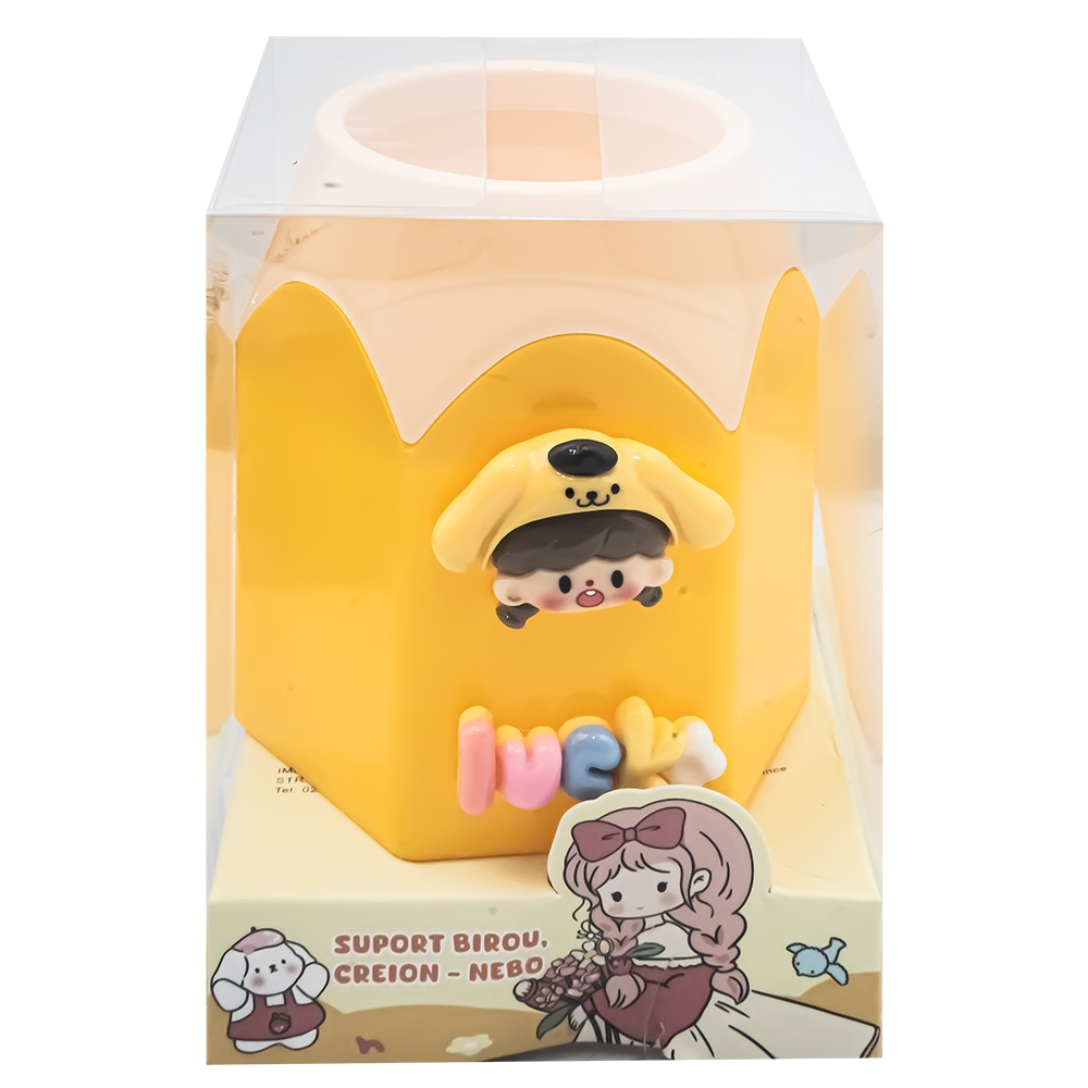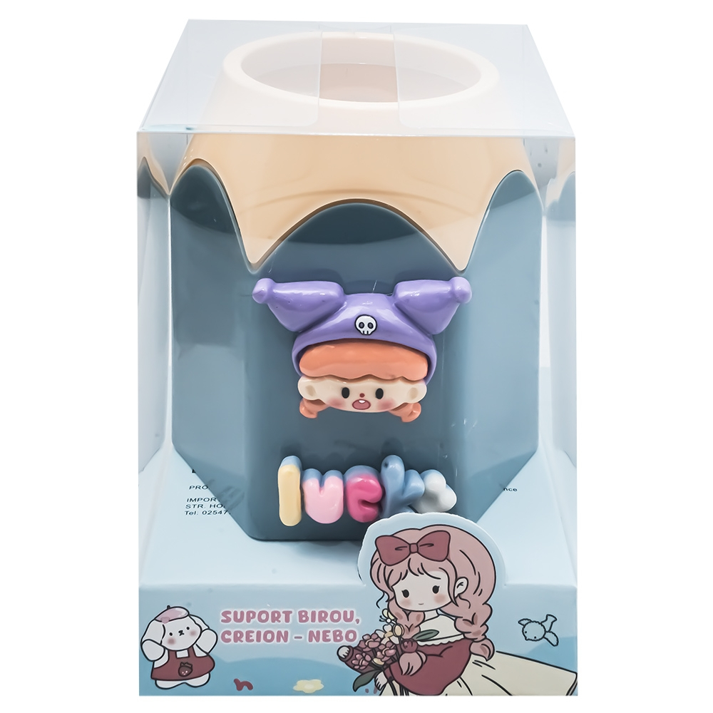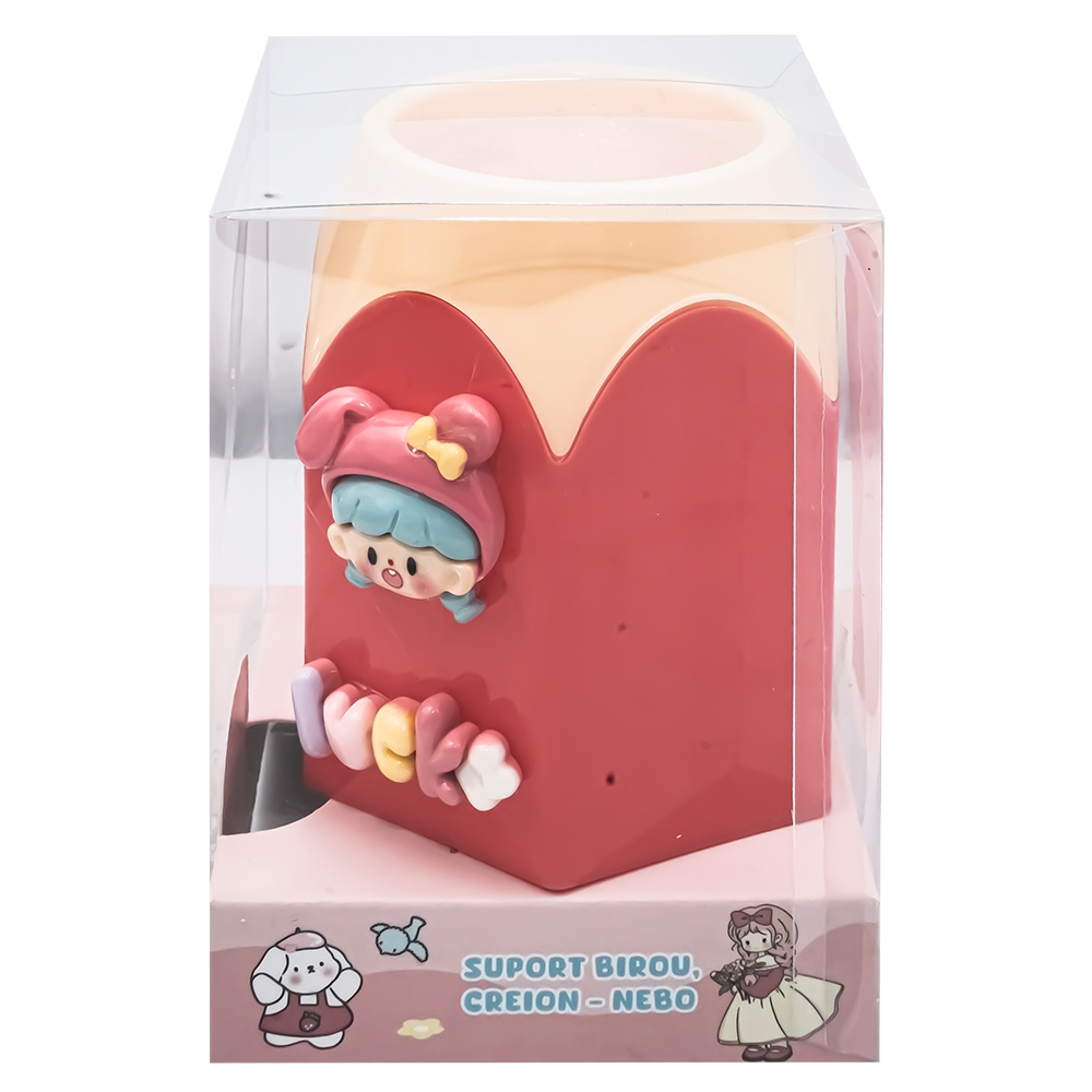 Suportul de birou Nebo, cu design de creion hexagonal și decor kawaii, aduce un plus de culoare și veselie spațiului de lucru. Este compact, practic și ideal pentru organizarea instrumentelor de scris. Perfect pentru birou, cameră de copil sau spații creative.
