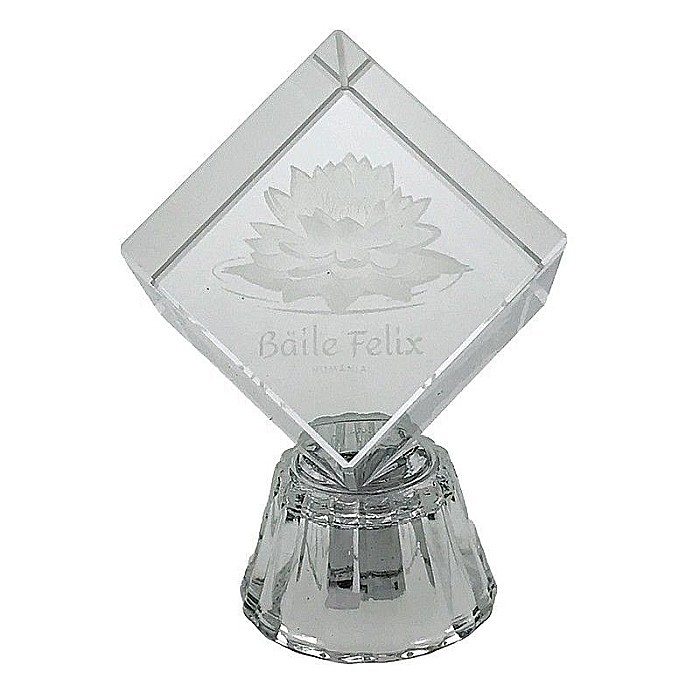 Cub din sticla decorativ, cu led, cu Baile Felix.