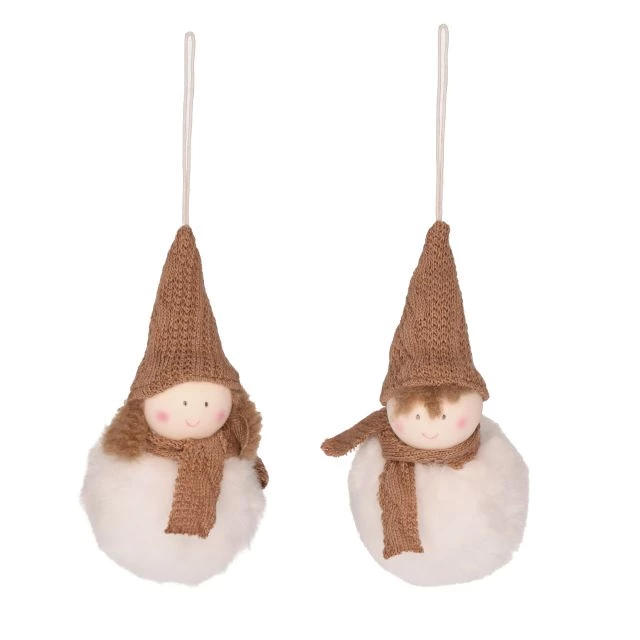 Acești copii adorabili cu căciulițe din material textil aduc un plus de farmec decorului tău de Crăciun. Sunt moi, delicați și perfecți pentru a fi agățați în brad sau integrați în aranjamente festive. Setul conține două figurine simpatice, realizate cu atenție la detalii.