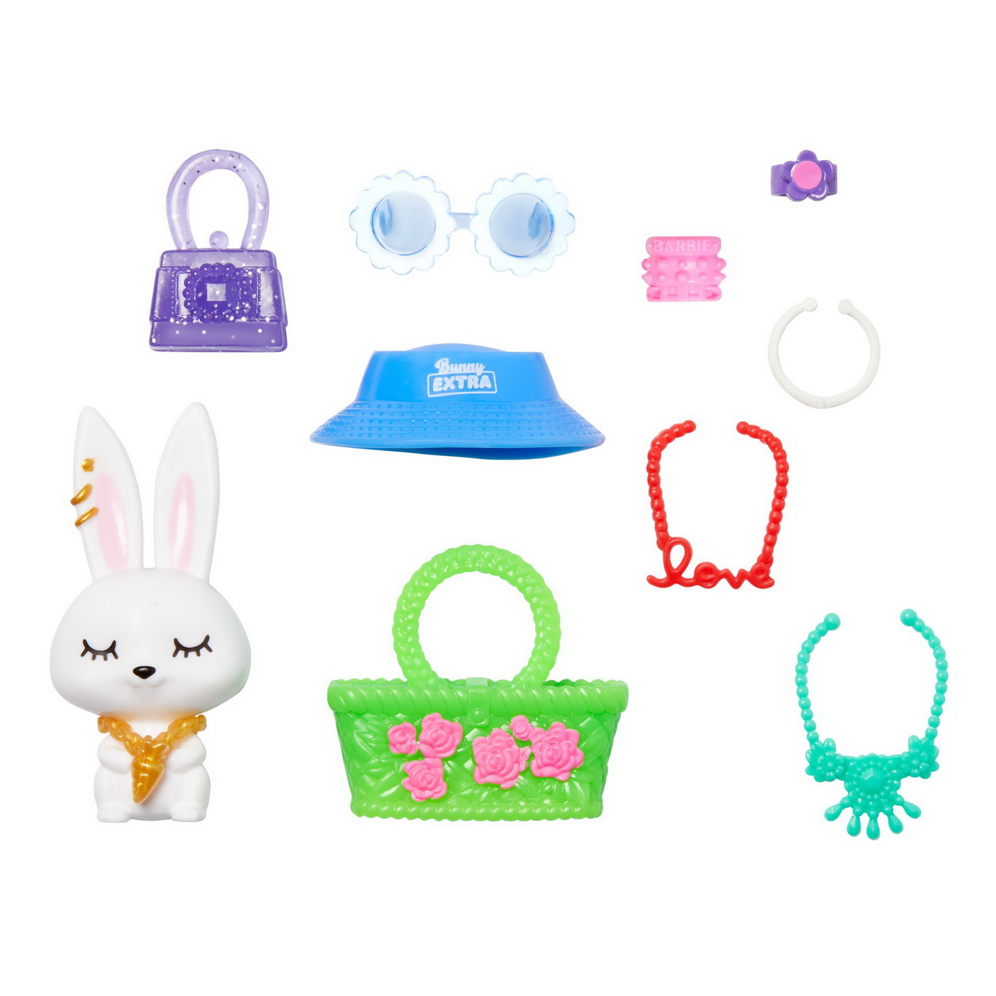 Papusile Barbie® Extra etaleaza tinute indraznete si culori vii si iau atitudine! Fiecare papusa Barbie® are propriul stil jucaus si extravagant. Iar animalele lor de companie, fiecare diferit si adorabil, au si ele o personalitate puternica! Barbie® Extra permite copiilor sa exploreze exprimarea de sine prin stil si ofera o experienta de moda si stilizare captivanta, cu papusi articulate. Reprezinta distractie cu moda cu sclipici, ursuleti gumati, emoji si par distinctiv, aducand un vibe EXTRA oriunde merg. Fiecare se vinde separat, in limita stocului disponibil. Papusile nu isi pot mentine pozitia fara sprijin. Culorile si decoratiunile pot varia. •Cand vine vorba de moda, papusile Barbie® Extra au o atitudine „mai mult inseamna mai mult”, cu 15 piese care includ imbracaminte si accesorii de moda, precum si un animal de companie si accesorii pentru animalul de companie. • Coafura papusii Barbie® este la scara mare, cu par blond foarte lung cu detaliu de impletitura si inimioare mov foarte cool peste tot. • Îsi expune stilul increzator intr-o bluza de culoare aprinsa cu imprimeu floral, pantaloni scurti asortati din denim cu volane, un poncho flower-power translucid si ghete albe pana la glezne. • Accesoriile includ o geanta cos de picnic, ochelari de soare cu flori de inspiratie retro si multe bijuterii exagerate distractive pentru a incuraja exprimarea de sine si distractie cu povesti. • Animalul sau de companie iepuras este vai-ce-Extra, cu palarie detasabila, bijuterii aurii voluminoase si o expresie adorabila. • Papusile Barbie® Extra sunt cadouri excelente pentru copii cu varste intre 3 si 10 ani, in special pentru cei carora le place sa fie chiar ei extra!