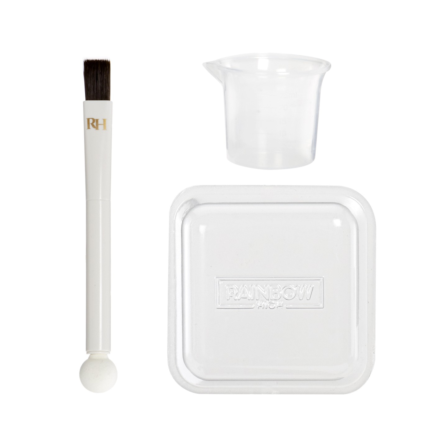 Rainbow High Watercolor & Create face extrem de usor sa-ti creezi propria papusa personalizata Rainbow High in multe moduri diferite, inclusiv cu Tie-Dye! Poti folosi acuarelele lavabile si pe propriul par! Apoi, doar clateste si repeta pentru a crea din nou. Adauga apa in cele 6 pulberi colorate pentru a crea acuarele, apoi coloreaza hainele si parul. Include 6 culori (roz, portocaliu, galben, verde, albastru si violet) pentru a face atat de multe desene colorate. Este atat de simplu! Pentru desene precise, aplica acuarelele folosind buretele cu doua capete direct pe haine si par. Atatea moduri de a te distra! Include elastice pentru a crea modele amuzante de tie-dye - spirale, straturi si multe altele. Sabloanele fac usor sa creezi forme amuzante pe par si haine. In plus, fata de papusa imbracata intr-o tinuta alba (tricou alb, pantaloni si pantofi albi), primesti si un tricou si pantofi bonus. Este atat de usor sa repeti procesul. Pur si simplu spala cu apa si sapun, lasa sa se usuce si incepe din nou sa creezi! Coloreaza-ti si tu parul! Doar aplica pe suvite pentru a adauga culoare parului tau. Nota: culoarea va fi mai vibranta pe parul mai deschis! Papusa Watercolor & Create are par lung si drept cu breton scurt, gene lungi si ochi din sticla. Colectioneaza intreaga gama de papusi Watercolor & Create. Este inclusa 1 papusa exclusiva cu o tinuta complet alba si incaltaminte pentru papusa plus tricou si pantofi bonus, 6 acuarele lavabile colorate, burete cu doua capete, elastice, sablon, pahar de masurare, bol de unica folosinta, lingura si pieptene. Fiind complet articulata, este super distractiva si usor de personalizat. Capul, bratele, mainile si picioarele se indoaie pentru multe pozitii amuzante, inclusiv spagatul! Sau o poti expune pe suportul inclus pentru papusa.