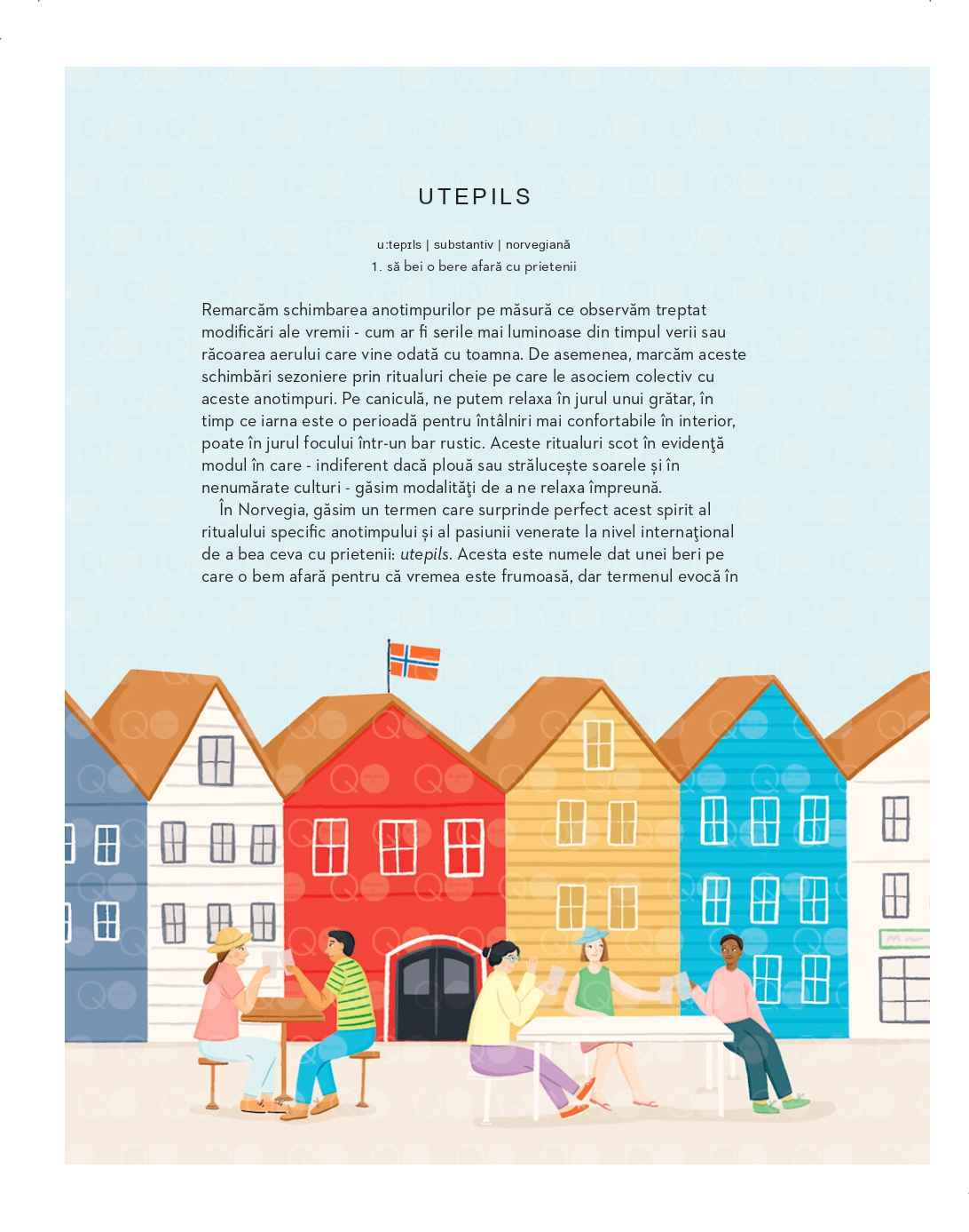 Autoarea Megan C. Hayes explorează concepte care descriu atât starea de bine colectivă, cât și momentele de retragere și reflecție personală. Unele dintre cuvintele prezentate se referă la bucuria liniștită trăită împreună cu ceilalți, altele la seninătatea descoperită în solitudine, în clipele de deconectare autentică.