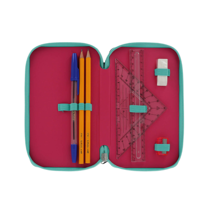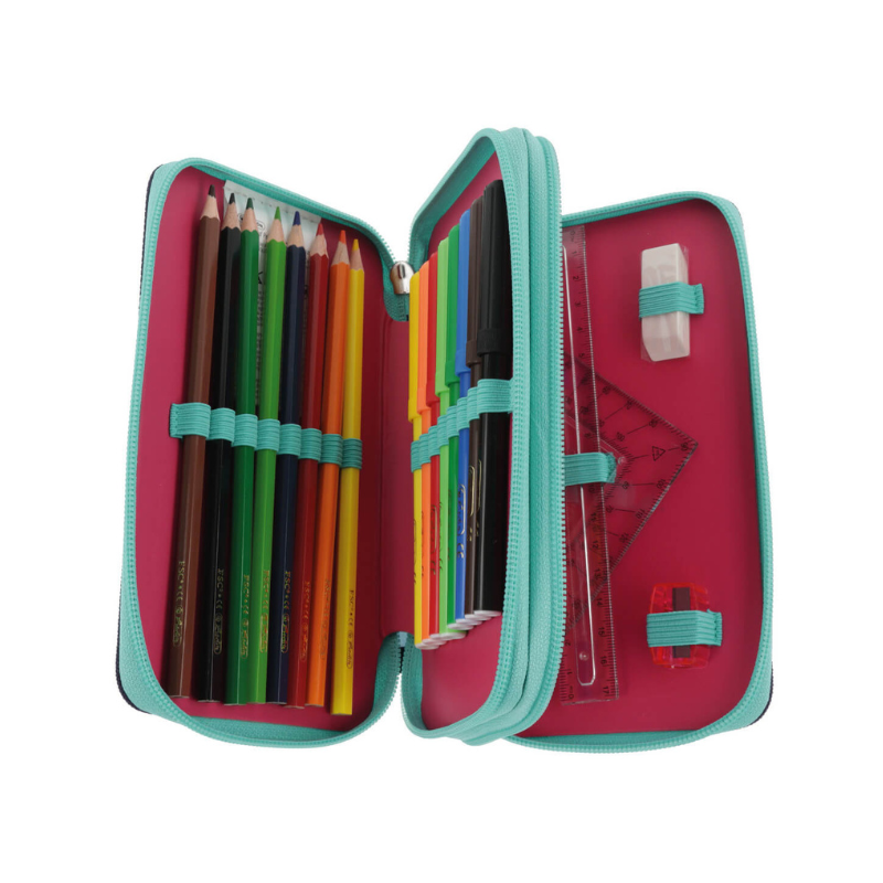 Cu un design plin de farmec și utilitate maximă, penarul echipat Pink Stars este alegerea potrivită pentru fetițele care își doresc un accesoriu școlar frumos, dar și funcțional. Dotat cu două compartimente spațioase, fiecare prevăzut cu fermoar rezistent, penarul permite organizarea clară și practică a rechizitelor zilnice. Interiorul este bine compartimentat, cu benzi elastice care fixează fiecare piesă la locul ei, oferind acces rapid și ordine.