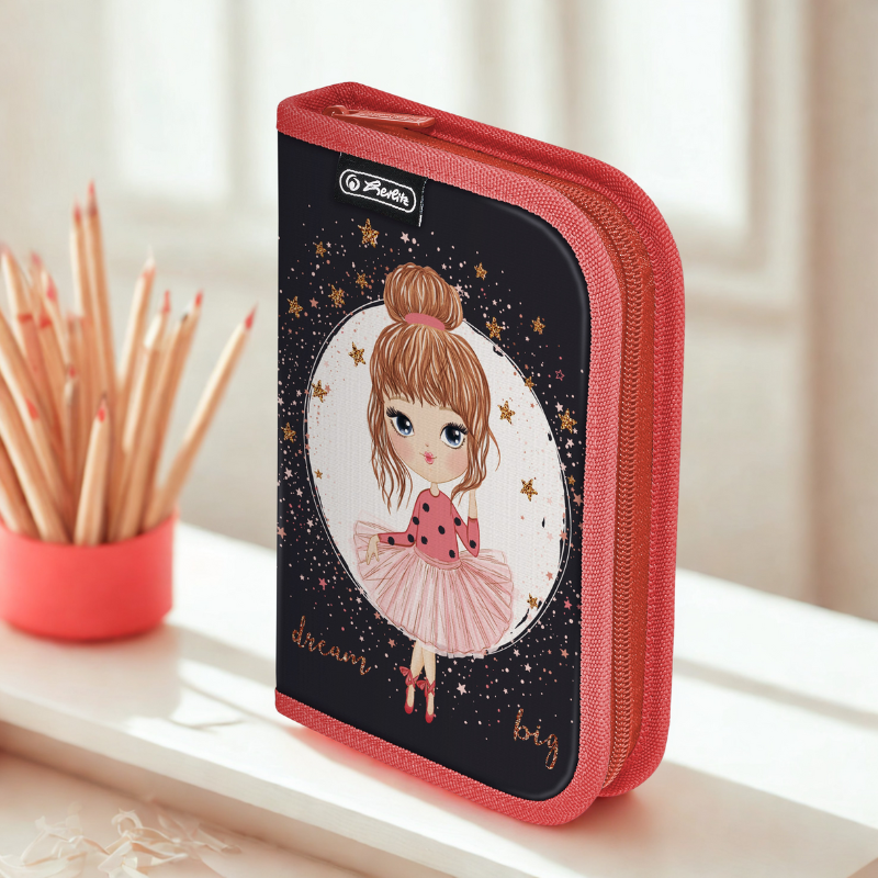 Realizat dintr-un material textil ușor, dar durabil, acest penar este alegerea ideală pentru utilizarea zilnică, fie că este purtat în ghiozdan, fie că este folosit acasă pentru teme și activități creative. Imprimeul „Moon Princess”, în nuanțe delicate și cu accente de poveste, face din acest penar un accesoriu deosebit pentru micile visătoare.
