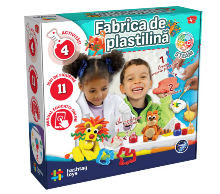 Incurajati spiritul artistic si curiozitatea stiintifica a copilului dumneavoastra cu Setul fabrica de plastilina cu animale Hashtag Toys, un produs ce transforma modelajul intr-o lectie captivanta de chimie distractiva. Este bine sa cumparati acest produs deoarece ofera toate resursele necesare pentru a crea plastilina acasa, utilizand faina de grau, sare de mare si o formula speciala care garanteaza o textura perfecta pentru modelaj. Puteti folosi pigmentii inclusi (albastru, rosu, galben) si baza de parfum de piersica pentru a obtine culori vibrante si un miros placut, dezvoltand astfel coordonarea si conceptele stiintifice prin experimente practice. Kitul este echipat cu unelte profesionale precum pipete Pasteur, pahar de masurat, recipiente si forme variate pentru taiat, asigurand ore intregi de explorare creativa sub protectia manusilor incluse. Fiind un set multicolor de 0.63 kg, acesta este conceput sa reziste utilizarii repetate, permitand micilor sculptori sa isi imbunatateasca dexteritatea in timp ce dau viata unor figurine minunate. Comandati acum aceasta fabrica de plastilina de la Hashtag Toys pentru a le oferi copiilor o poarta catre o lume a imaginatiei fara limite, unde invatarea devine cel mai frumos joc.