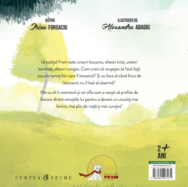 „Fram în lumea emoțiilor și a întunericului” este o carte plină de învățăminte despre gestionarea emoțiilor, perfectă pentru copiii cu vârste între 2-4 ani. Ursulețul Fram este un personaj adorabil care trece printr-o gamă largă de emoții, de la bucurie și curaj, până la frică și tristețe. Cartea abordează cu blândețe teme importante, precum frica de întuneric, și învață micii cititori cum să facă față acestor sentimente prin metode simple și accesibile vârstei lor.