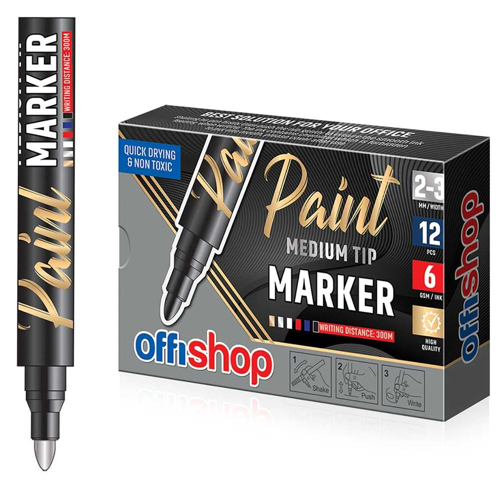 Markerul permanent Offishop cu vopsea argintie îți oferă scriere intensă și durabilă pe orice tip de suprafață. Vârful mediu de 2-3 mm permite trasarea de linii clare și uniforme, iar vopseaua pe bază de ulei asigură o acoperire excelentă și un efect metalic deosebit.