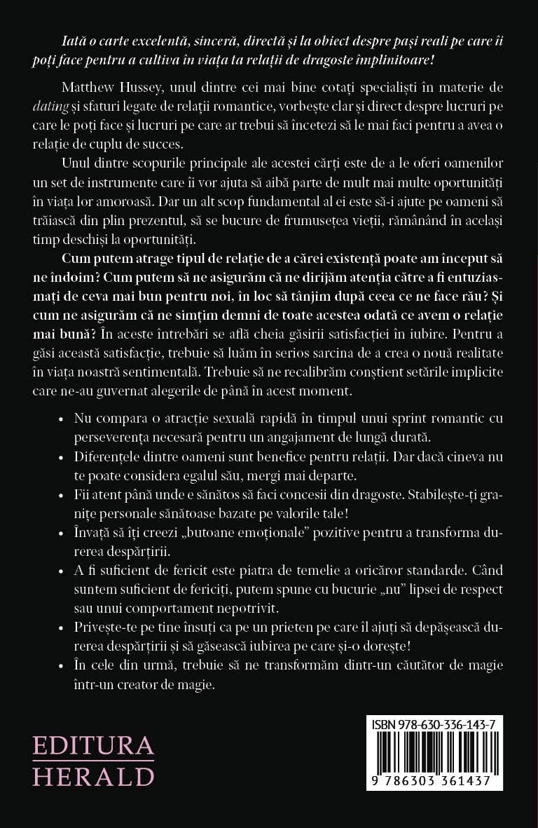 Un ghid practic despre dating, tipare emoționale și construirea unei relații stabile. Matthew Hussey oferă pași concreți pentru a găsi persoana potrivită fără să te pierzi pe tine. O carte despre claritate, limite sănătoase și iubire matură.