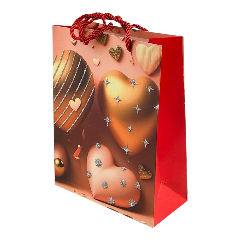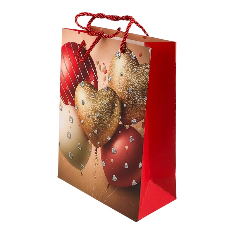 Această pungă cadou din hârtie este decorată cu un design elegant și romantic, cu baloane în formă de inimă, fiind perfectă pentru a adăuga un plus de farmec oricărui dar.