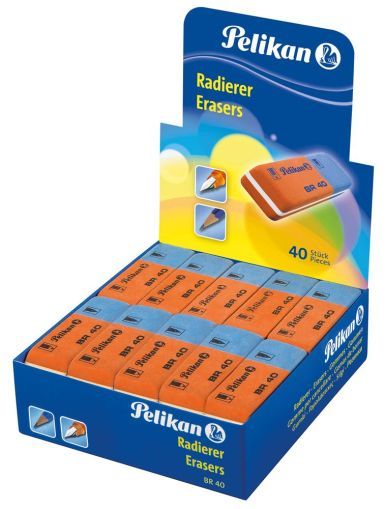 Radiera BR 40, corp realizat din cauciuc, forma dreptunghiulara, dimensiune 58 x 20 x 8 mm, pentru stergere creion grafit sau cerneala, culoare rosu/albastru, in cutie de carton tip display, set 40 bucati/cutie