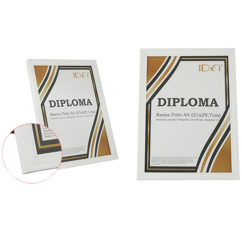 Rama foto A4 este potrivită pentru expunerea fotografiilor, diplomelor sau certificatelor. Are un design simplu și curat, ușor de integrat în diverse spații. Este ideală pentru utilizare acasă sau la birou.