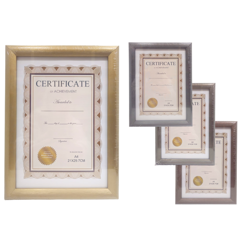 Rama foto A4 este destinată documentelor și imaginilor cu dimensiunea de 21 x 29.7 cm. Are un aspect de lemn lucios, care conferă un plus de eleganță fără a încărca vizual documentul expus. Este potrivită pentru fotografii, diplomă sau certificat și poate fi utilizat atât acasă, cât și la birou, ca soluție practică pentru organizarea și expunerea documentelor.