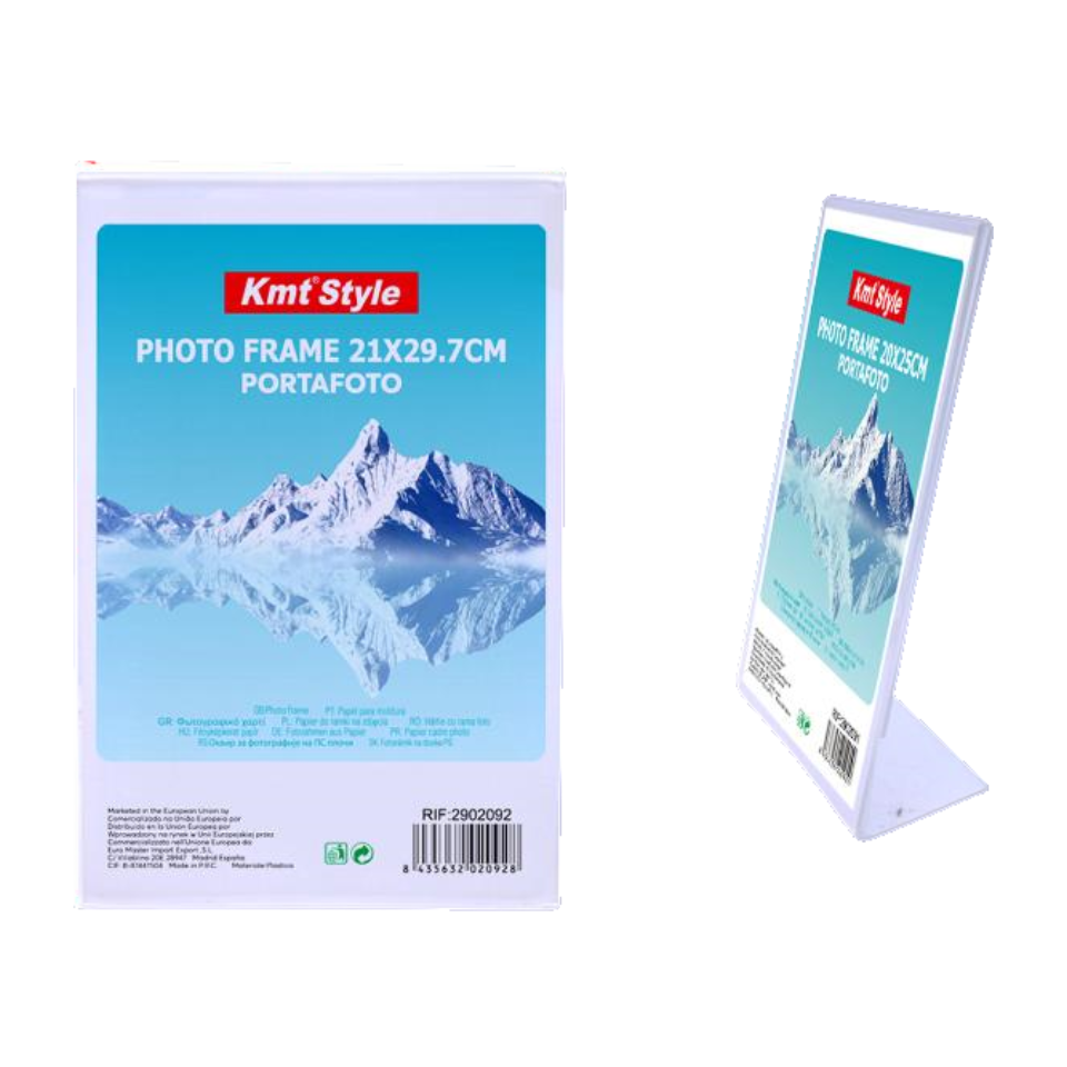 Ramă foto practică și ușoară, potrivită pentru fotografii sau documente în format mare. Designul simplu o face ușor de integrat în orice spațiu. Ideală pentru birou sau locuință.