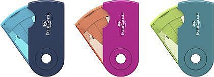 Ascutitoare din plastic Sleeve dubla, cu container, in culori pastel. Forma ergonomica, pentru utilizare usoara. Pentru creioane grafit si colorate, standard sau jumbo.