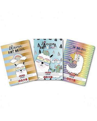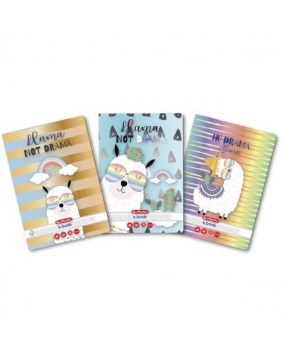 Caiet, format A5, coperti din carton dublu cretat, lucios, colturi rotunjite, hartie 70 g/mp, 48 file, patratele, capsat, motiv Llama