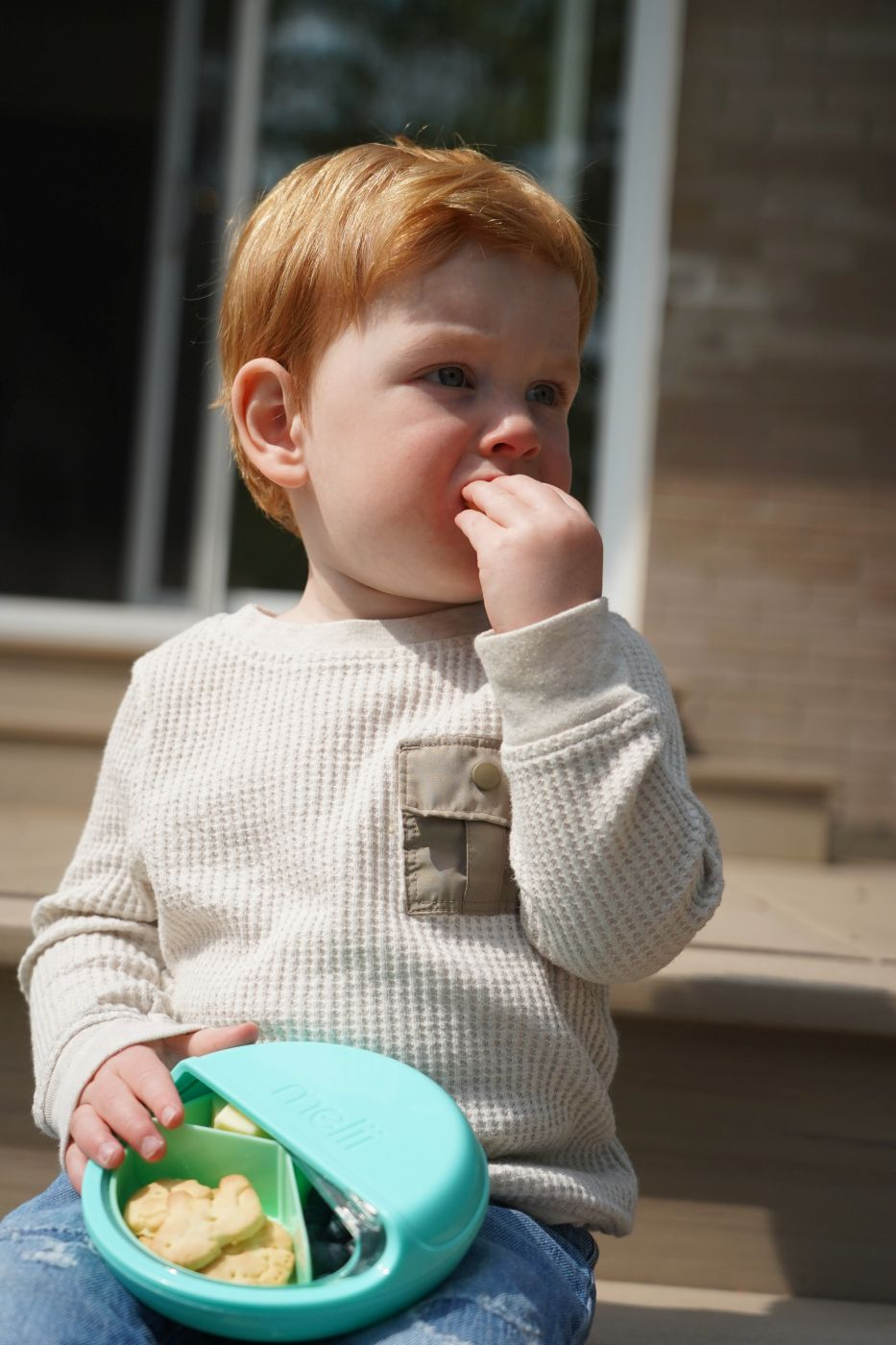 Snack time devine mai distractiv si organizat. Melii Spin Container este alegerea ideala pentru gustarile on-the-go, creat pentru a aduce independenta si bucurie celor mici in rutina zilnica. Cu trei compartimente separate si un sistem de rotire usor de folosit, copilul isi poate alege singur gustarea cu o simpla miscare. Proiectat atent pentru design si functionalitate, containerul are o fereastra transparenta care gliseaza usor, dezvaluind cate un compartiment pe rand – ajutand copiii sa ramana concentrati si reducand riscul de varsare. Culorile moderne si liniile curate il transform in accesoriul perfect pentru geanta de pranz, rucsac sau geanta pentru scutece. Compact, rezistent si perfect pentru calatorii, Melii Spin Container pastreaza gustarile proaspete si separate, oferind o experienta senzoriala si interactiva ce insoteste copilul in cresterea sa – de la primii ani si mult timp dupa. Caracteristici: Se deschide, se inchide si se roteste usor 3 compartimente pentru gustari, 4oz/114 ml fiecare (total: 12oz/177 ml) Ideal pentru calatorii si utilizare zilnica Compatibil cu masina de spalat vase, usor de curatat Varsta recomandata: 3+ Fara BPA, fara plumb, fara PVC, fara cadmiu Instructiuni de curatare: Separati piesele inainte de spalare. Poate fi pus in masina de spalat vase pe raftul superior sau spalat manual cu apa calda si sapun, inainte de prima utilizare si dupa fiecare folosire. Verificati produsul regulat si inlocuiti la primele semne de deteriorare. Lasati sa se usuce complet inainte de reasamblare.