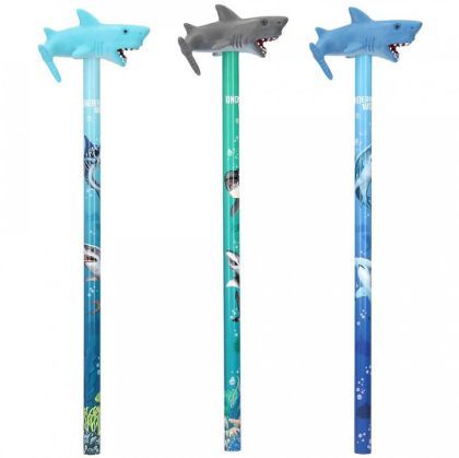 Creioane cool cu modele realiste de rechin de la Underwater World. Disponibil în 3 culori (albastru, gri, turcoaz) și cu imprimeuri subacvatice grozave. diametru creion: 7 mm; Grad de duritate: HB