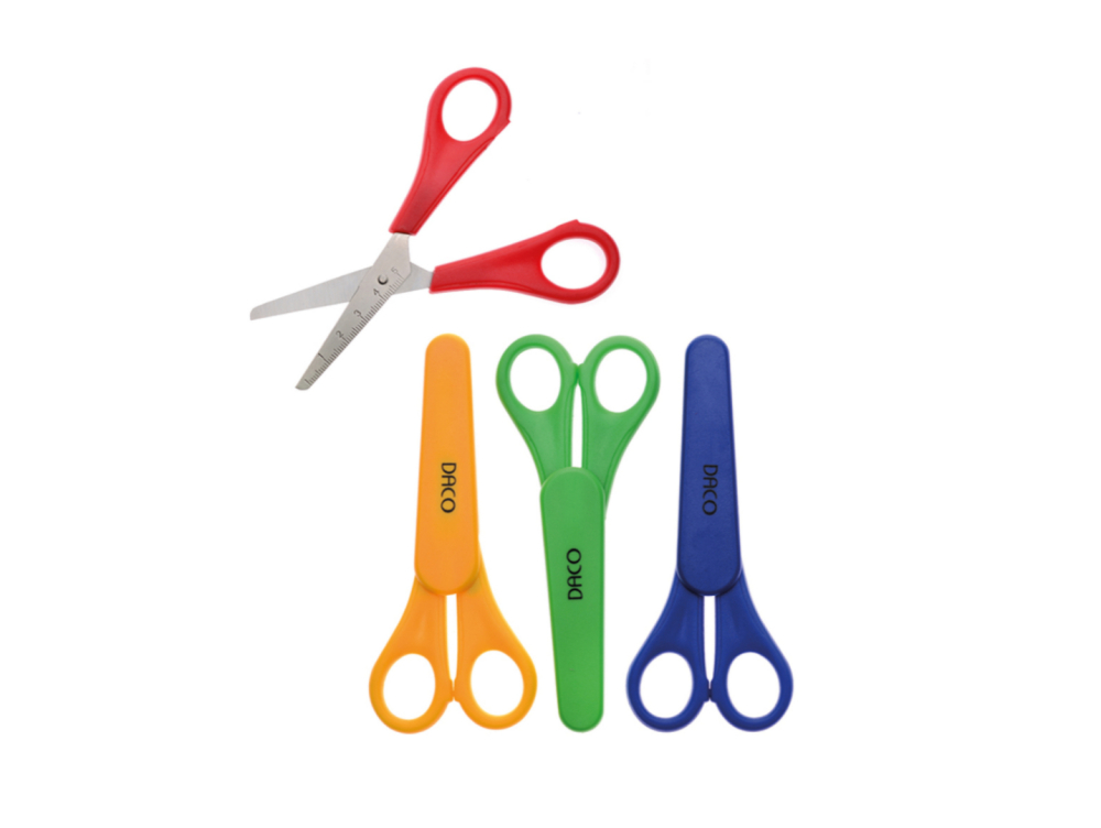 Foarfeca Daco pentru grădiniță, cu lungime de 13.2 cm, este special concepută pentru mâinile mici ale copiilor. Are vârfuri rotunjite pentru siguranță sporită și este prevăzută cu teacă de protecție. Ideală pentru activități creative la grădiniță sau acasă.