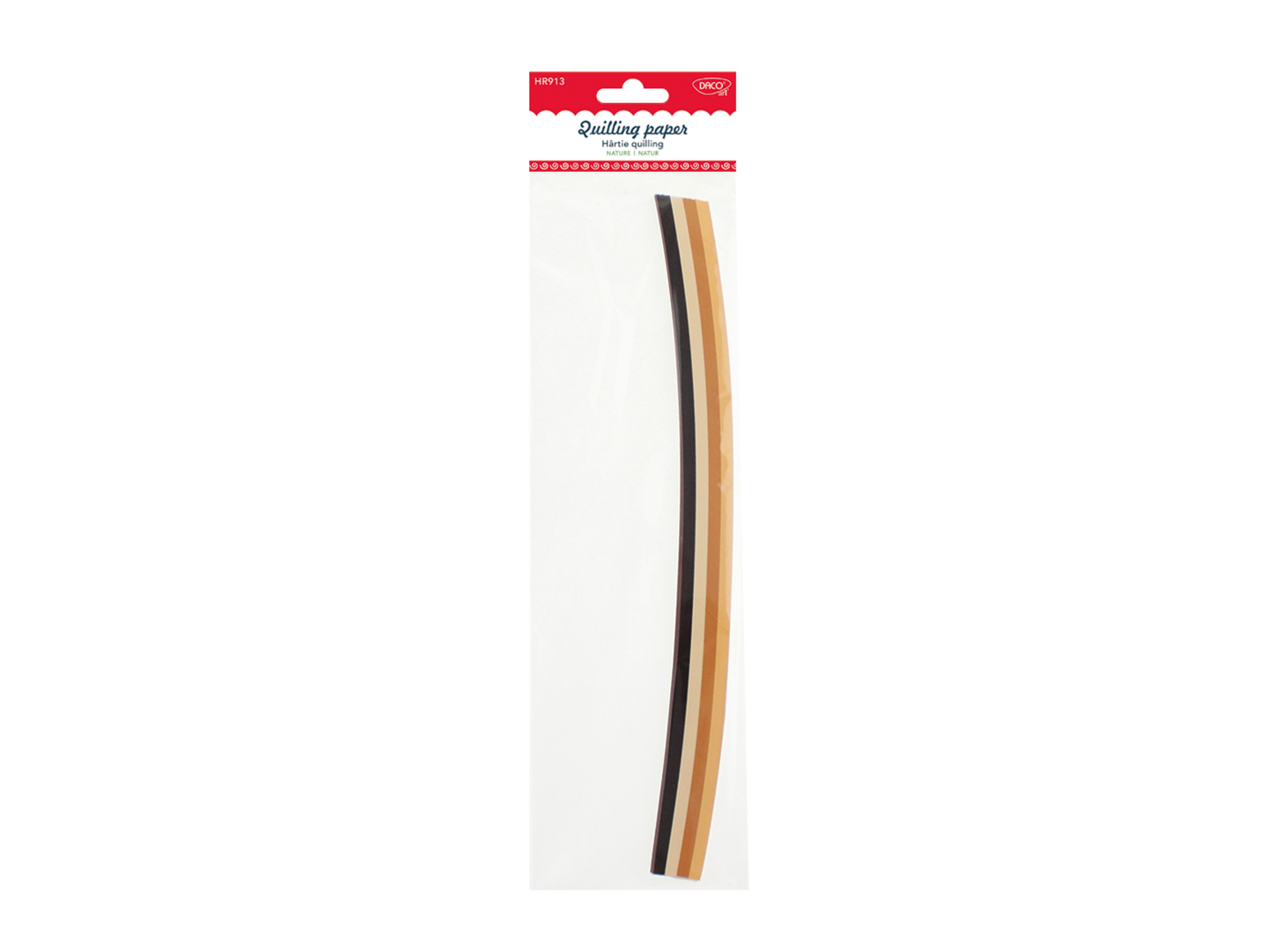 Set hârtie quilling DACOart natur cu 200 fâșii în 4 culori degrade, de la maro la crem. Dimensiune 30 cm x 5 mm, grosime 80 g/mp. Ideal pentru proiecte creative și modele detaliate.