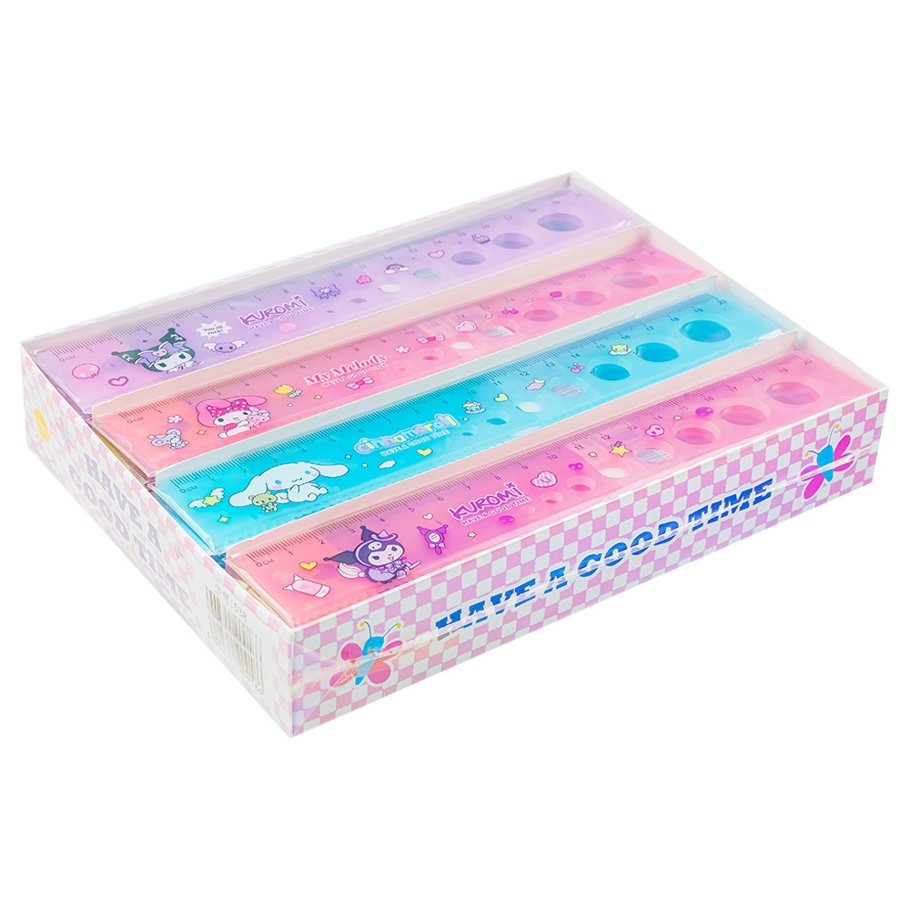 Liniarul cu șabloane de 20 cm este un accesoriu practic și atractiv, ideal pentru școală și activități creative. Realizat din plastic translucid și decorat cu desene vesele, îmbină utilul cu un design jucăuș. Este ușor de folosit și aduce un plus de culoare în orice penar.