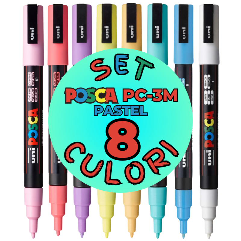 Marker Uni pc-3m Posca 0.9-1.3mm set 8 culori pastel