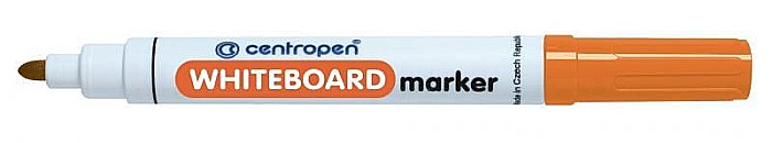 Markerul whiteboard Centropen portocaliu oferă scriere clară și intensă. Are vârf rotund de 2.5 mm și cerneală pe bază de alcool. Este potrivit pentru whiteboard, sticlă și PVC.
