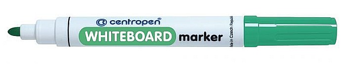 Markerul whiteboard Centropen verde oferă scriere clară și vizibilă pe tablă. Are vârf rotund de 2.5 mm și cerneală pe bază de alcool. Este potrivit pentru whiteboard, sticlă și PVC.