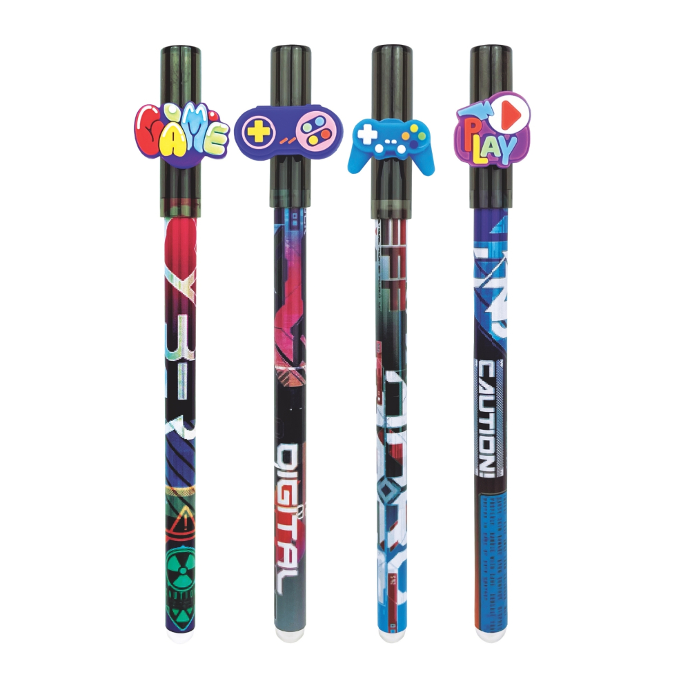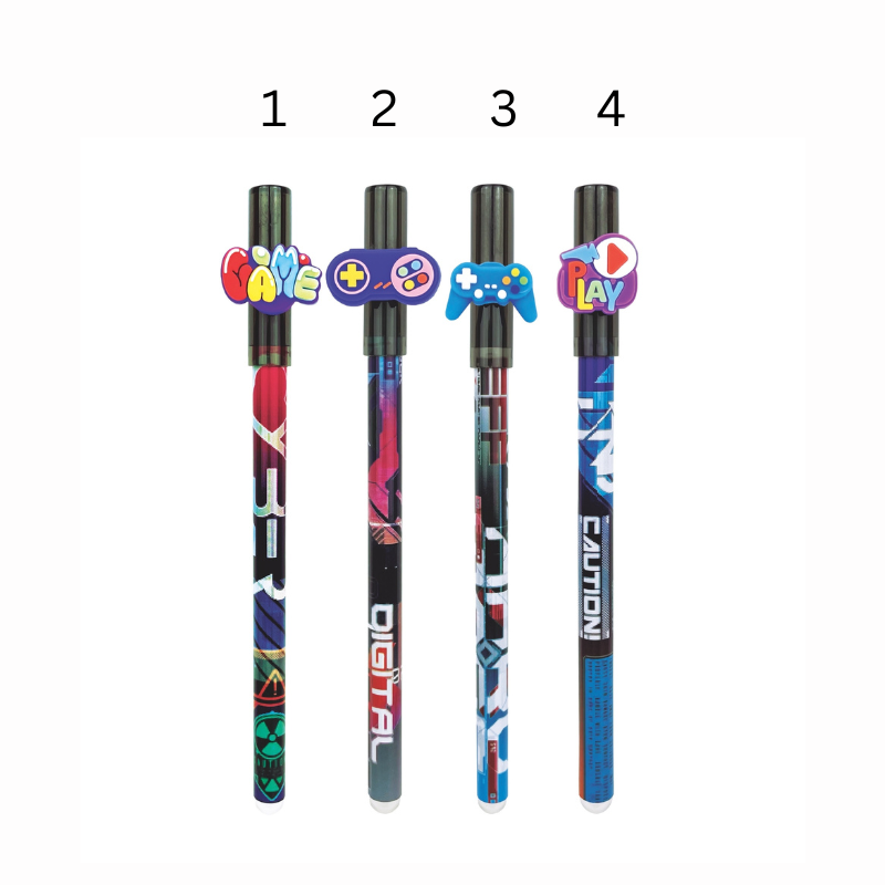Pixul care se șterge Upsy Game are un design inspirat din lumea jocurilor. Este prevăzut cu capac și permite corectarea ușoară a scrisului. Este disponibil în patru modele diferite.