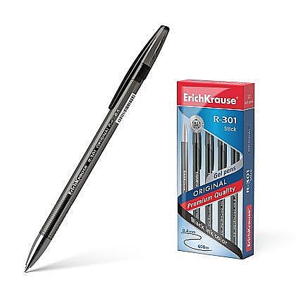 Un stilou cu cerneală cu gel, clasic, cu elemente acoperite cu metal, un tip standard de vârf și o reîncărcare înlocuibilă. Pixul are un butoi rotund colorat translucid în culori saturate, cu o zonă de prindere confortabilă și profilată și un capac ventilat. Culoarea cilindrului și a capacului se potrivesc cu culoarea cernelii. Vârful cu cinci canale cu diametrul mingii de 0,5 mm în combinație cu cerneala gel cu uscare rapidă oferă o scriere ușoară, precisă și rapidă. Lungimea liniei continue este de 600 m la lățimea de 0,4 mm, ceea ce reprezintă o rată ridicată în categoria sa. Modelul R-301 Original Gel 0.5 are o formă elegantă și este cel mai bine vândut în gama de produse de stilou cu cerneală gel ErichKrause® în mai mult de cincizeci de țări din întreaga lume.